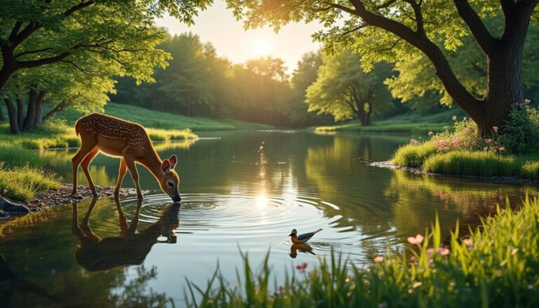 | Bassin naturel avec plantes aquatiques | Habitat diversifié, oxygène l’eau | Surveiller la qualité de l’eau |