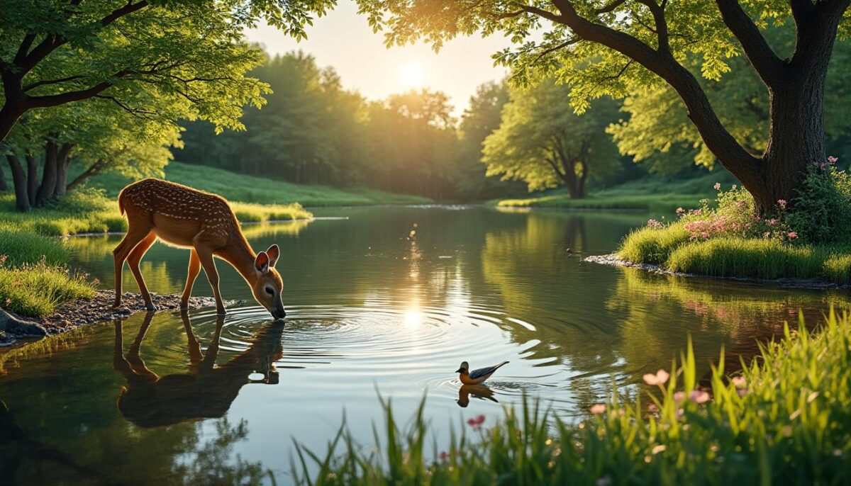 | Bassin naturel avec plantes aquatiques | Habitat diversifié, oxygène l’eau | Surveiller la qualité de l’eau |